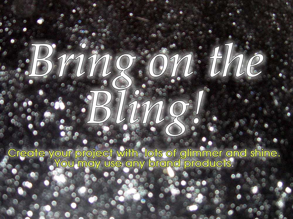 This week we have a challenge where you can let your shiny and glittery self run wild and create a project with lots of bling. Now is the time to use all your gemstones, pearls, shiny brads, glitter and create a project to make you wear sunglasses! We can't wait to see your shiny creations. Remember you can use any brand of products.