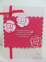 “I was so honored when Shannon asked me to join the HSS team! I was like, "who me???". I'm so honored to be part of this wonderfully creative team and hope I don't disappoint! I've been crafty as long as I can remember and always had a ton of coloring books and crayons and markers and paper. I got my first stamp set circa 1989...it was a Lisa Frank (remember all that stuff?) foam stamp set with bright NEON stamp pads. I was hooked! I started scrapping in college and grad school and found my way to cardmaking. At my first "real" job I met a SU demo who invited me to a Christmas card party in 2005 and I was blown away and have never looked back! I signed up as a demo in 2009 with the support of my fiance and now wonderful hubby. Papercrafting has been a huge blessing in my life! It's been a great hobby and creative outlet for me and I have made some of the best friends through stamping and SU! As for my non-stamping life, I'm a full time (and then some) athletic trainer and part time aerobics instructor where Turbokick is my torture of choice. It's fun to rock out to some jammin' tunes after sitting at the craft desk for hours on end! I'm an only child which I find pretty unique since I don't know many people who are. My husband Jon and I just celebrated our one year wedding anniversary in June after dating in high school and then taking a 10 year or so break! I also have a wonderful 6 pound toy fox terrier who will turn 6 this month! She likes to keep me company in my craft room while I stamp! I look forward to the challenges here and to being pushed to think outside the box!”